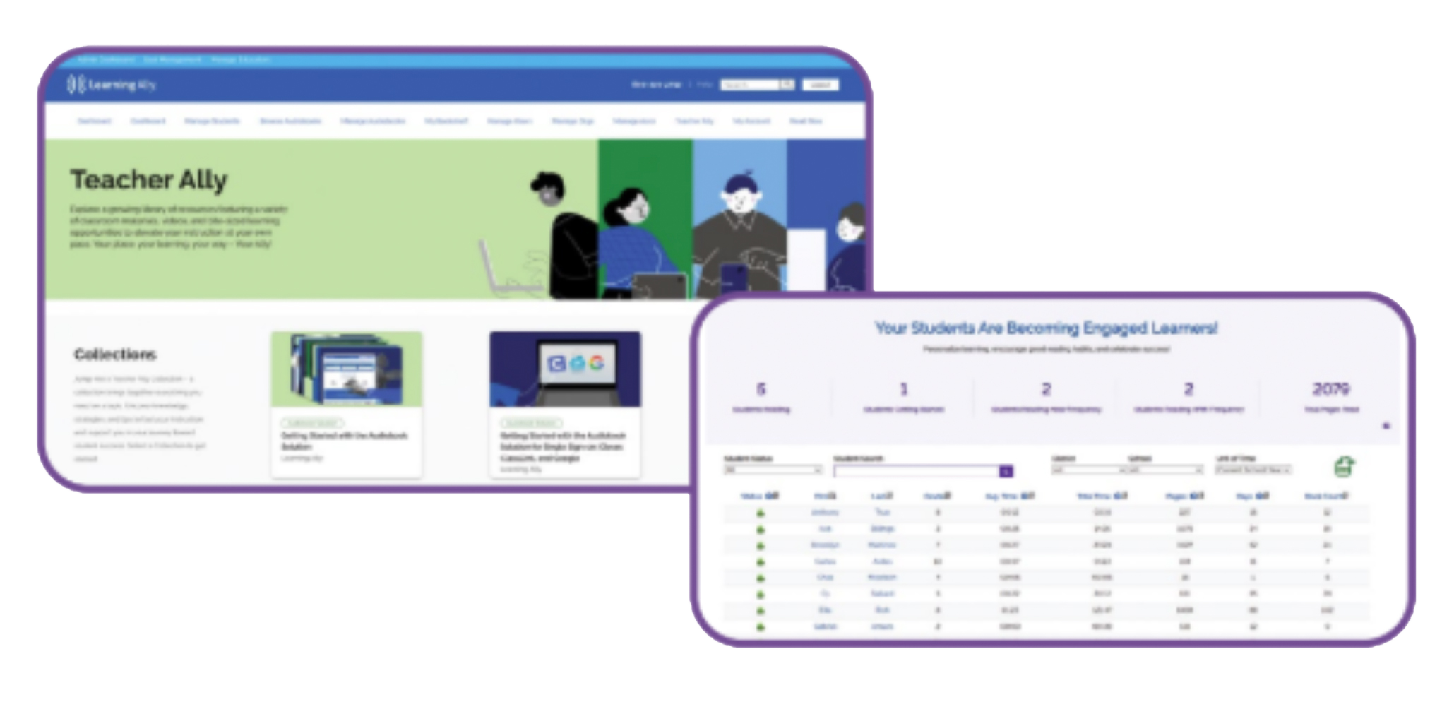 The Educator Portal includes access to a robust library of Teacher Ally self-serve educator resources plus reporting tools for tracking student reading progress.